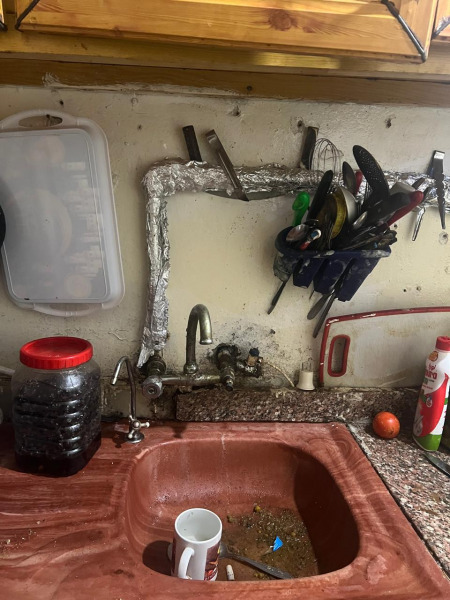 يتكون بيت إنتصار من غرفتين نوم ومطبخ والحمام هو جزء لا تتجاوز مساحته المتر مأخوذ من مساحة المطبخ.