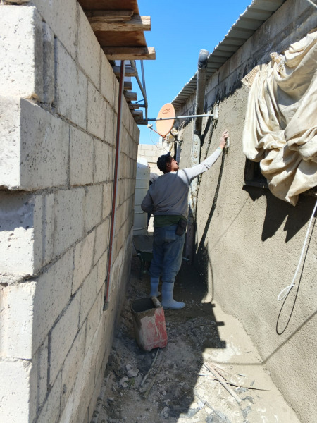 بفضل إحسانكم خلال شهر رمضان الفضيل لقد تم ترميم بيت منى بعمل صبة فوق الزينكو وعمل قصارة من الخارج لكامل البيت وتركيب حديد حماية للشبابيك.