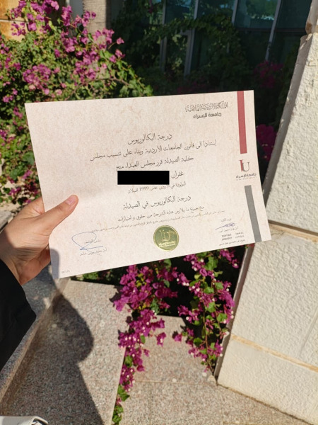 By the grace of God, an amount of 690 JODs has been paid to Ghofran's university for her final semester. With this support, she will finally receive her pharmacy degree after a long wait and can begin her professional journey.